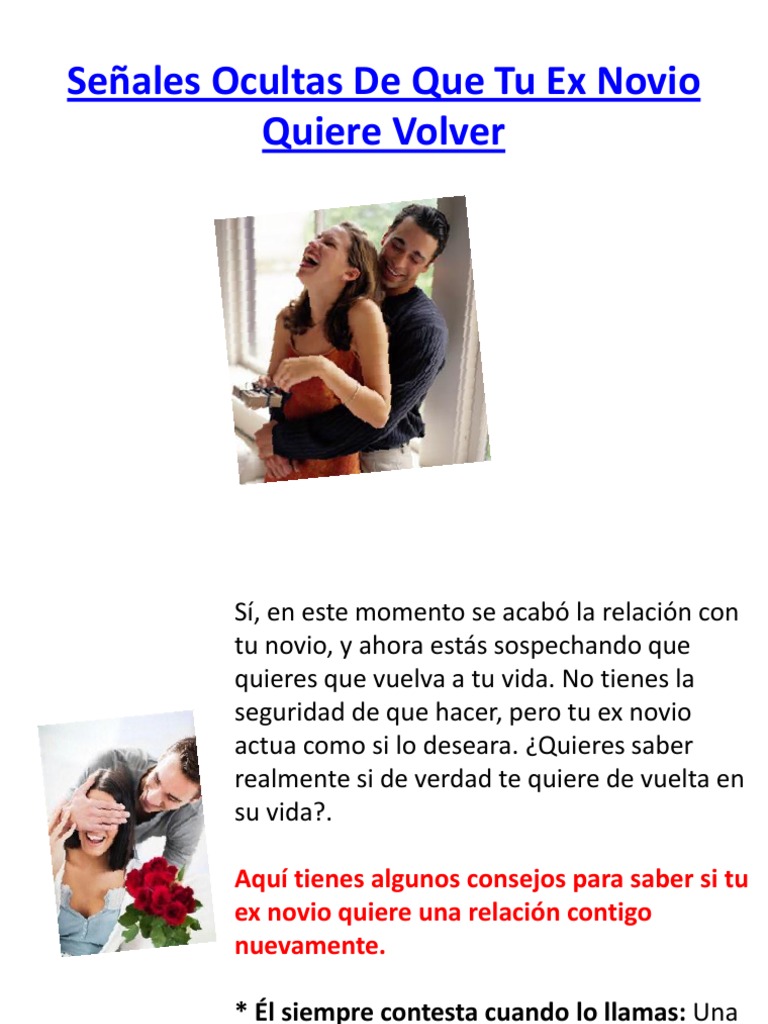 Recuerda que son unos tremendos Libros para ayudarte a saber como recuperar a tu ex. No hay nada peor que la sensación de haber terminado una relación que pudo ser increíble. Cómo Saber Si Mi Ex Quiere Volver Conmigo.