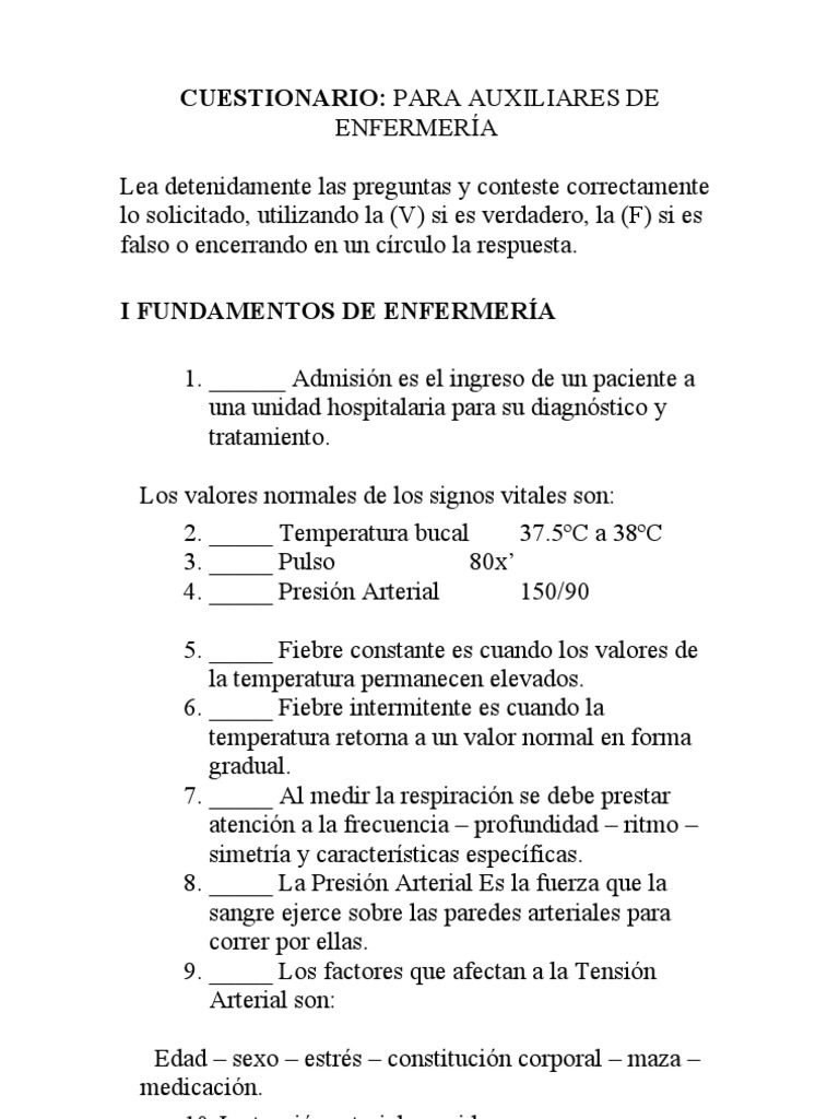 Balotario De Preguntas Para Tecnicos De Enfermeria