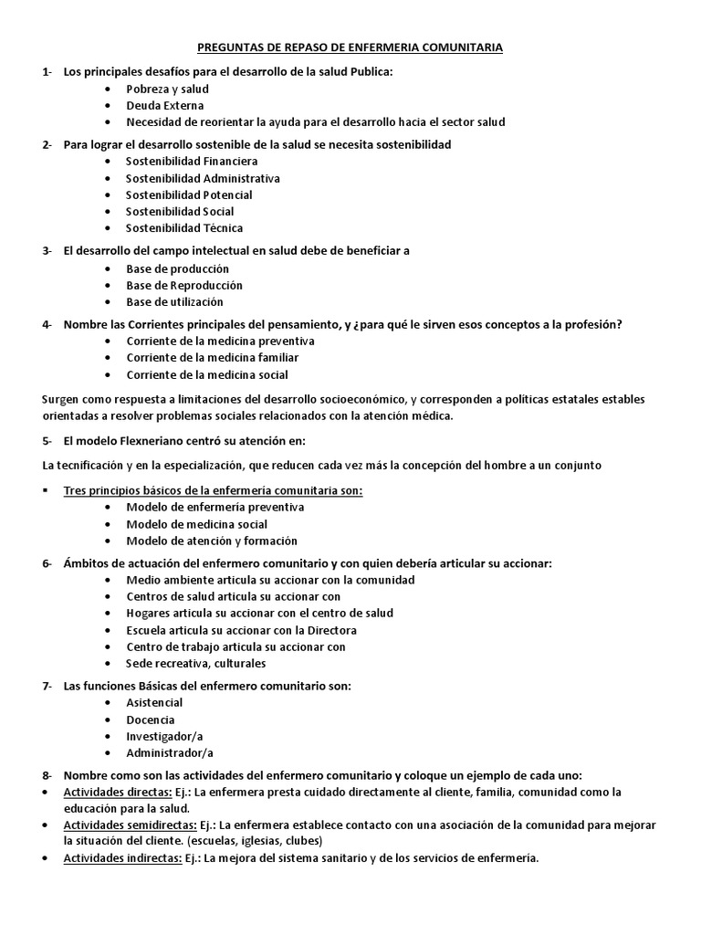1 Preguntas De Repaso De Enfermeria Comunitaria Pdf Enfermeria Planificacion